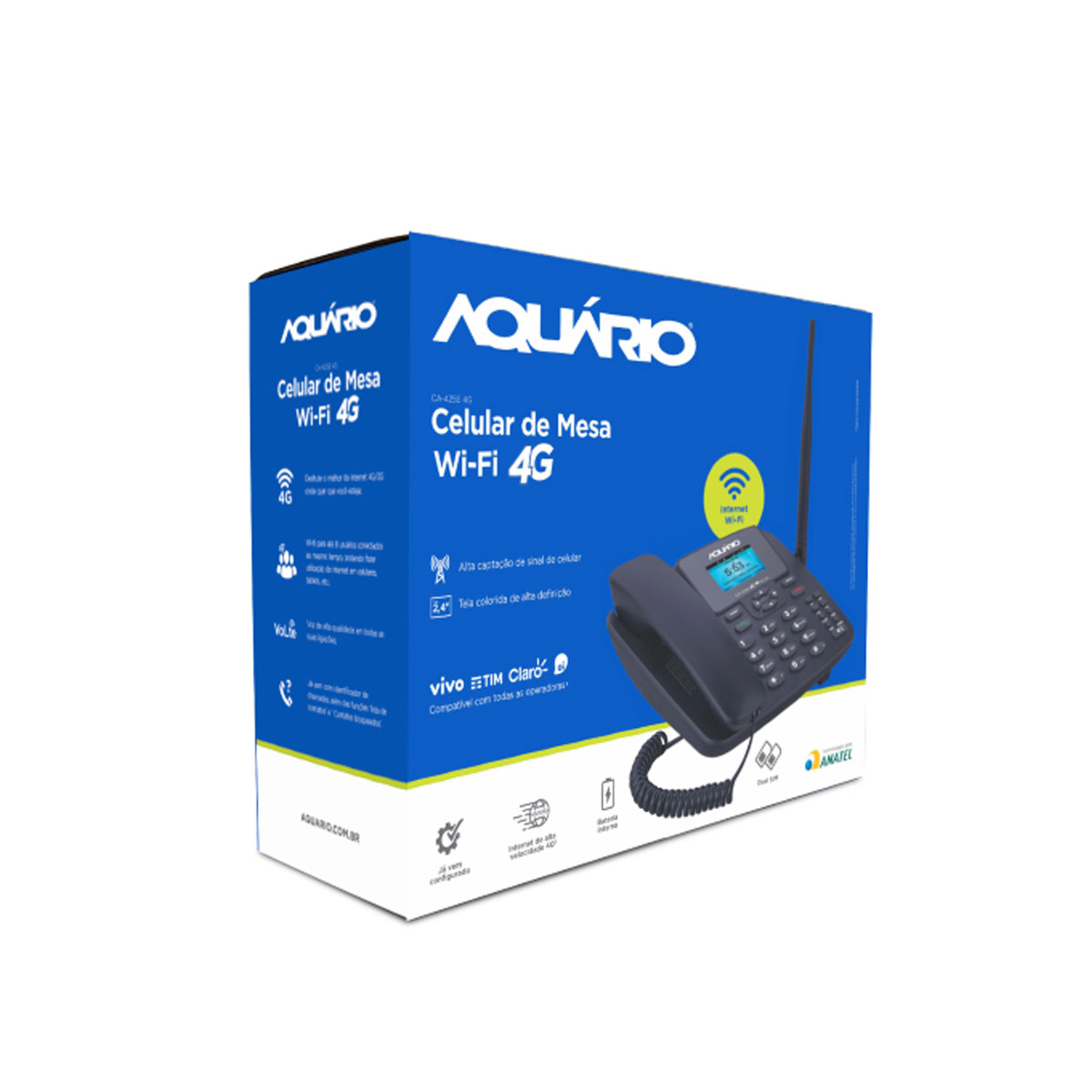 Internet 4G com a liberdade do Wi-Fi! O primeiro Celular de Mesa a oferecer tecnologia 4G, Wi-Fi integrado, display colorido e tela colorida 2,4” de alta definição