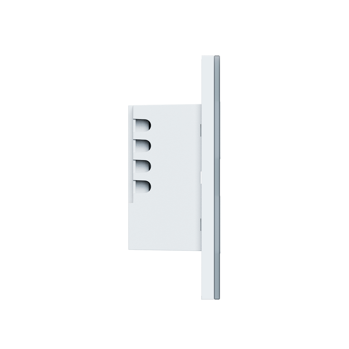 Com o mesmo design dos interruptores touch, possui painel de vidro temperado resistente a riscos e plástico antichamas que evita o amarelamento do produto.